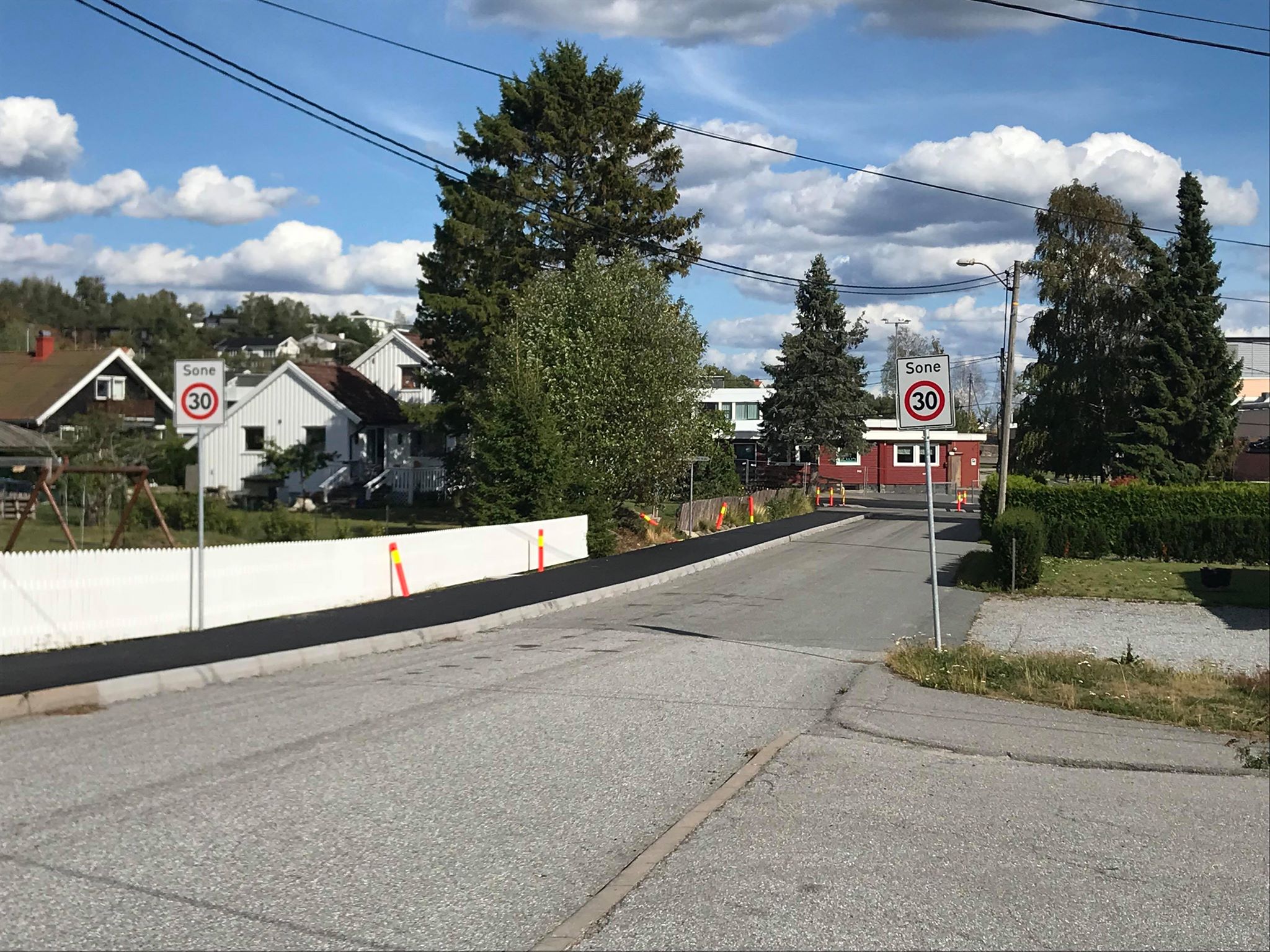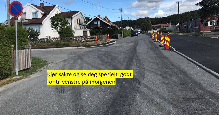 I sommer har vi fått nye droppsoner og fortau som vi håper vil øke trafikksikkerheten ved skolen.