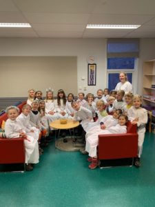 Skolen feiret Luciadagen med Luciatog og pepperkaker. På bildet ser dere noen av elevene