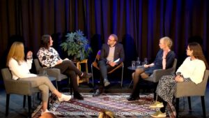Oppvekstdirektør Erik Bråthen, utvalgsleder for kultur og oppvekst Therese Thorbjørnsen (Ap), og leder av Kommunalt foreldreutvalg her i kommunen, Kristine Oshaug Andersen, deltar også i panelsamtalen. Ungdommens bystyre er også med.